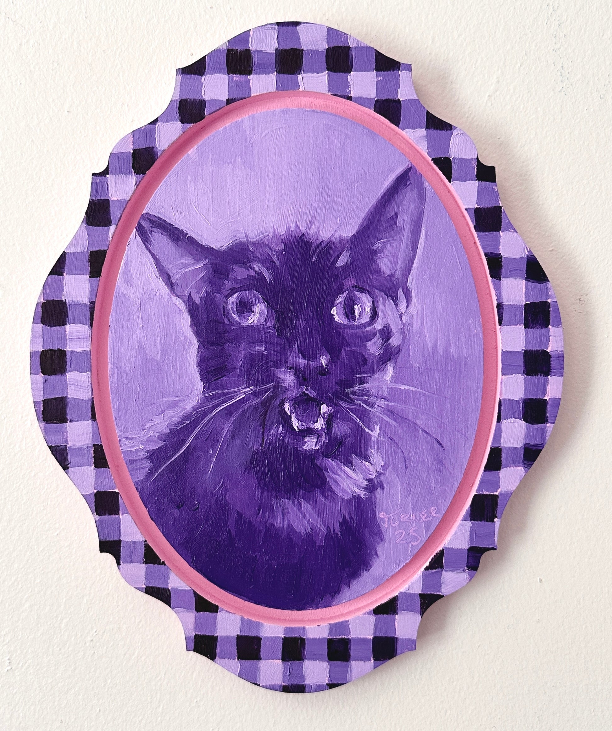 Gingham Bobbi - 10 x 8 inch original oil painting on wood panel