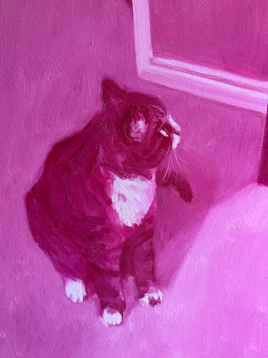 Pokie in the Chair - 10 x 8 inch original oil painting on wood panel