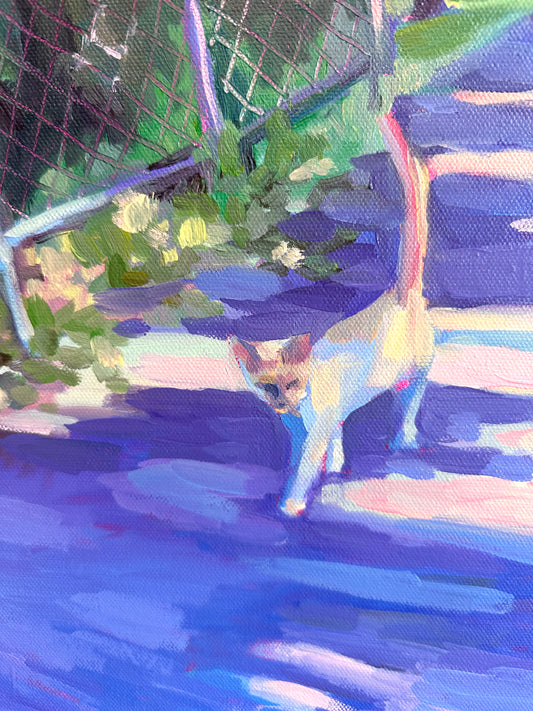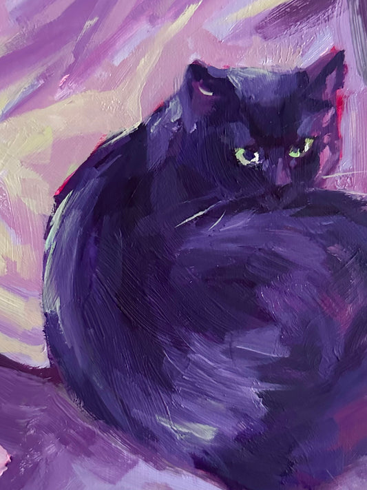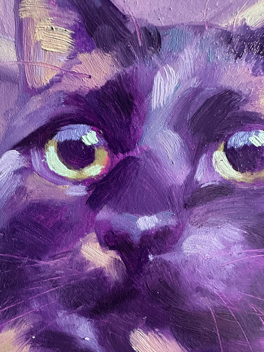 Pokie in Chartreuse and Violet - 5 x 7 inch original oil painting on panel