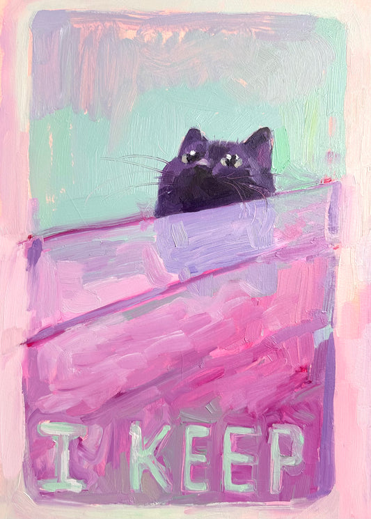 Birthday Cat Meme - 7 x 5 inch original oil painting on panel