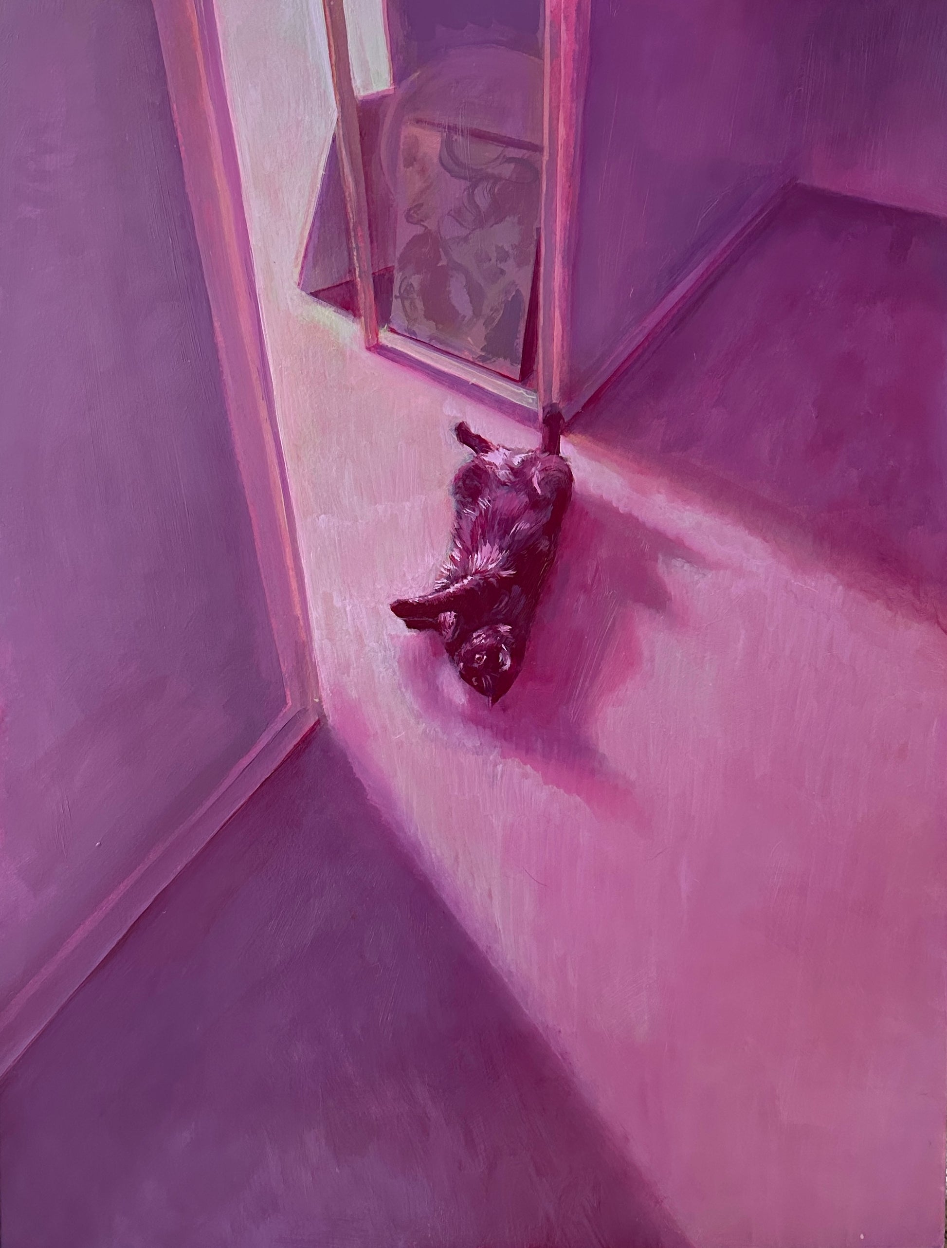 Measures 24 x 18 inches on cradled wood panel. Sealed with gloss varnish prior to shipping. Basic hanging hardware comes pre-installed.